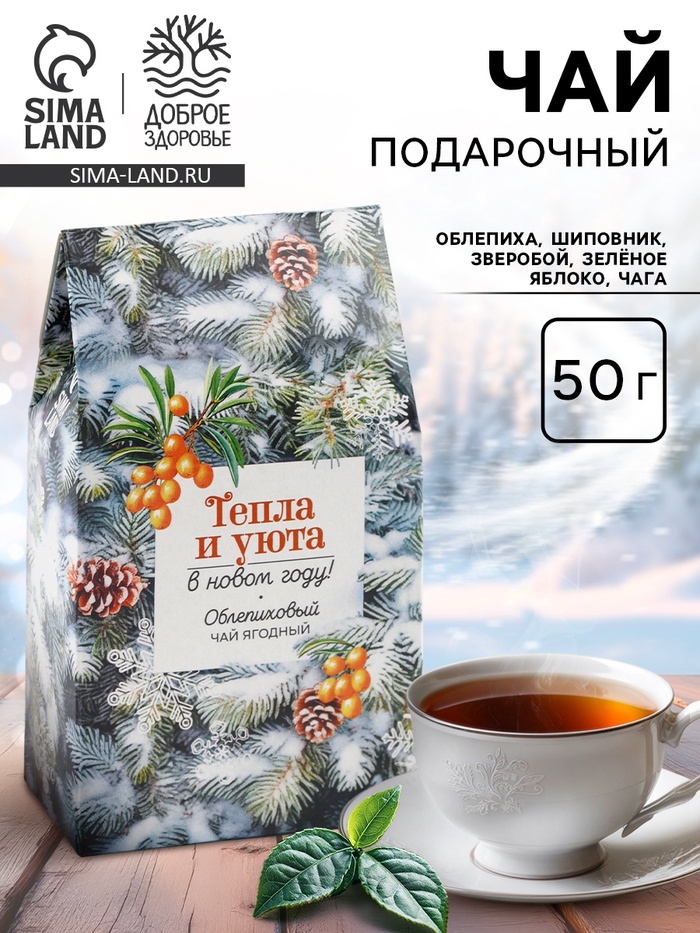 Состав: облепиха (ягода), чага, яблоко зелёное, зверобой (трава), плоды шиповника, кипрей (лист).