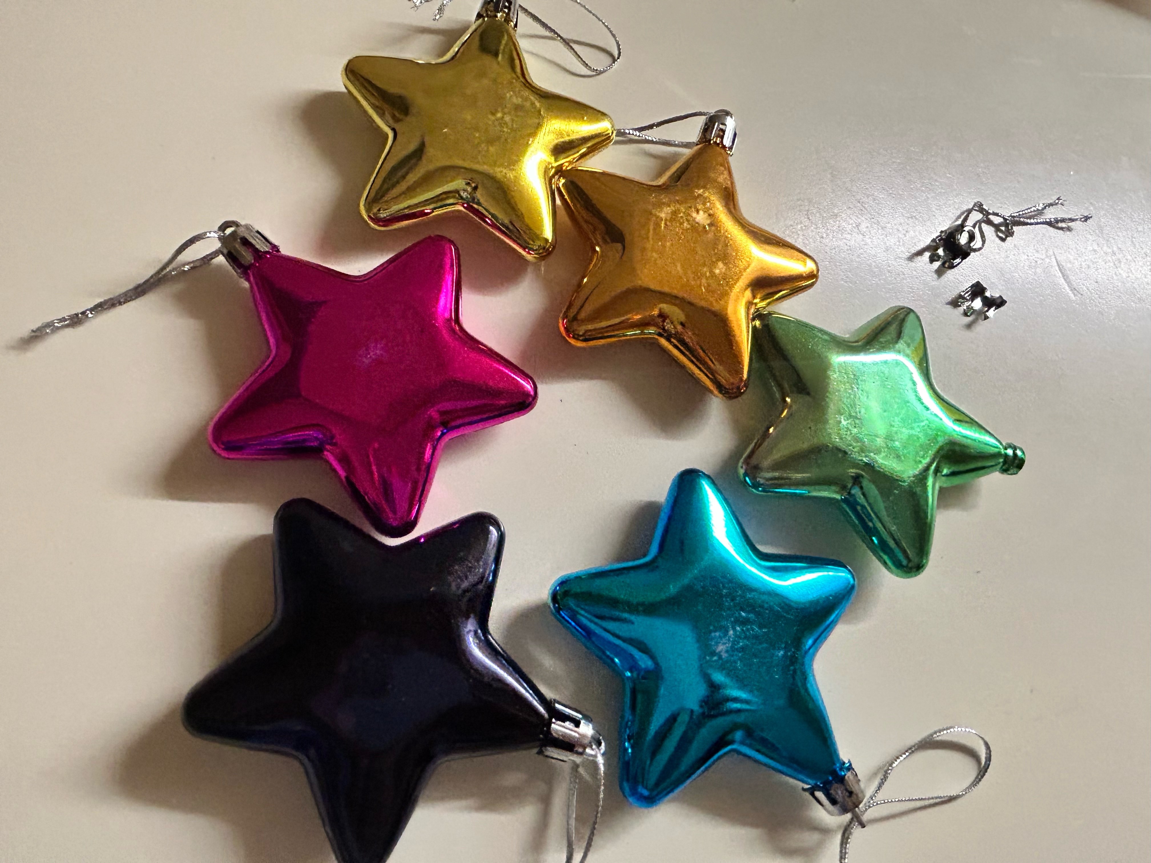 - Комплект — 6 звёзд, достаточно для оформления ёлки, создания праздничной композиции или дополнения подарочной упаковки.