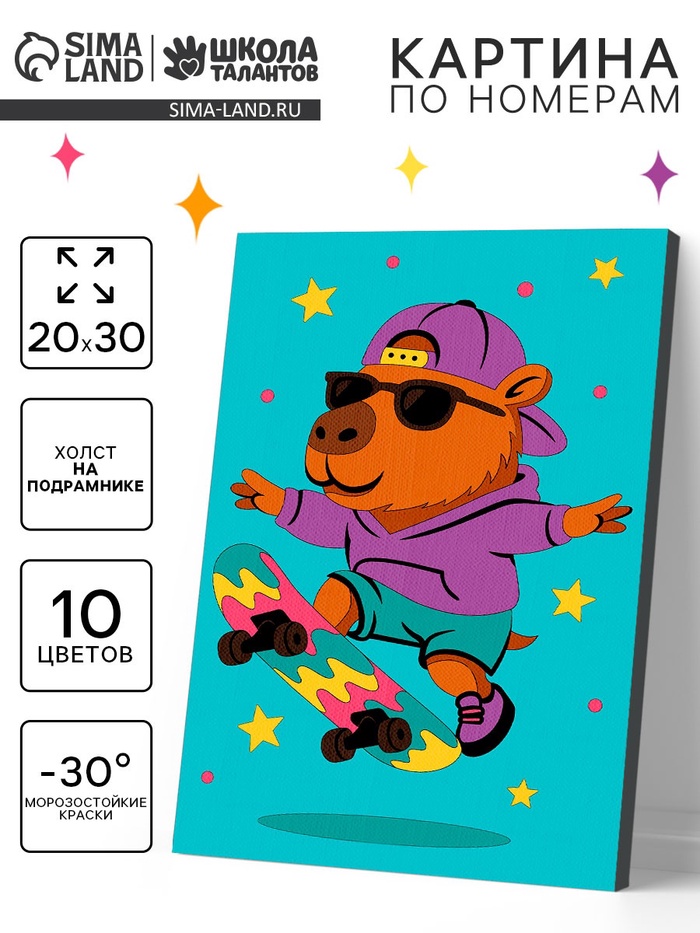 Картина по номерам «Капибара на скейте», 20×30 см (артикул 10958646) ЕОНК в категории Картины по номерам купить по цене 319 руб. с доставкой по России | Интернет-магазин EONK.RU Картины по номерам ЕОНК большой выбор товаров оптом и в розницу по низким ценам с доставкой по России