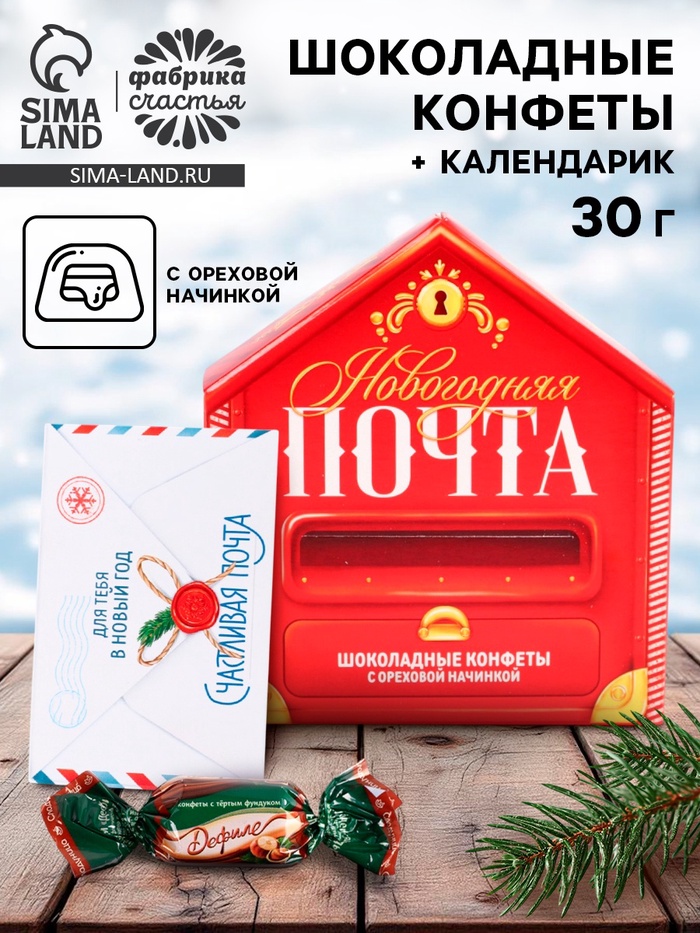 10449344 Конфеты шоколадные в коробке письме «Почта», 30 г