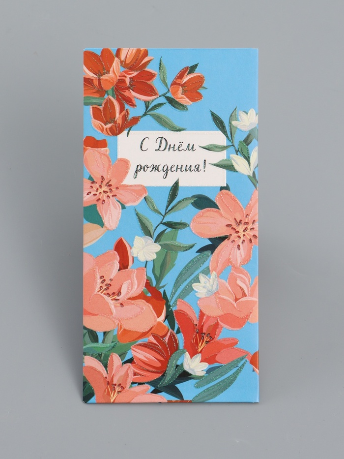 10939313 Конверт для денег «С днём рождения», цветы на синем, 16,5 х 8 см
