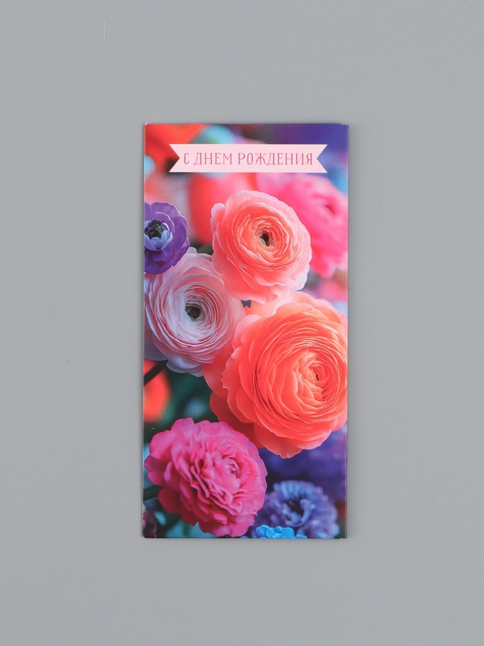 10939492 Конверт для денег «С Днем Рождения!», реалистичные цветы, 16,5 х 8 см