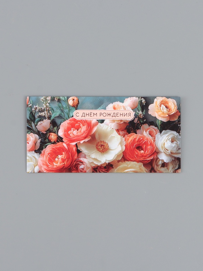 10939493 Конверт для денег «С Днем Рождения!», шикарные цветы, 16,5 х 8 см