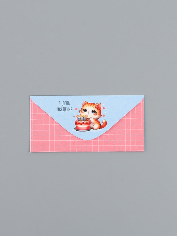 10939441 Конверт для денег «В День Рождения», кошечка, 16,5 х 8 см