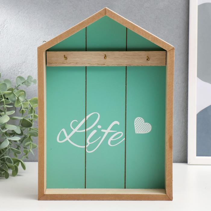 Крючки декоративные дерево «Life с сердцем», ключница настенная, панно, зелёный, 28×20×5 см (артикул 3695032) ЕОНК