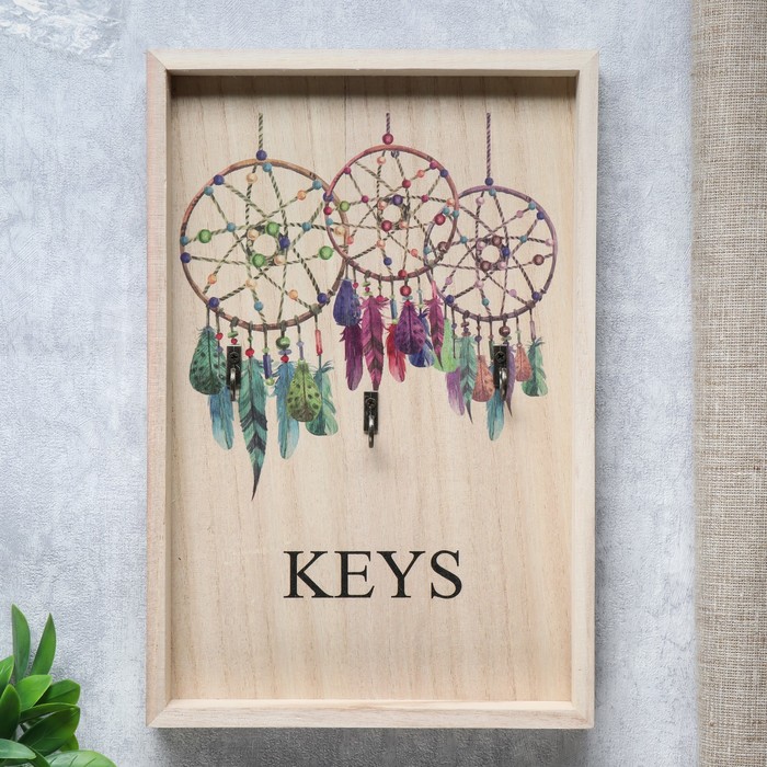 Крючки декоративные дерево «Ловцы снов», ключница настенная, панно, 29.8×19.8×2.7 см (артикул 4764214) ЕОНК