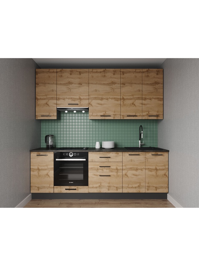 Кухонный гарнитур прямой «КРАФТ», 2400×600 мм, столешница 38 мм, цвет дуб вотан/детройт (артикул 10991313) ЕОНК в категории Кухонные гарнитуры купить по цене 65 923 руб. с доставкой по России | Интернет-магазин EONK.RU Кухонные гарнитуры ЕОНК большой выбор товаров оптом и в розницу по низким ценам с доставкой по России