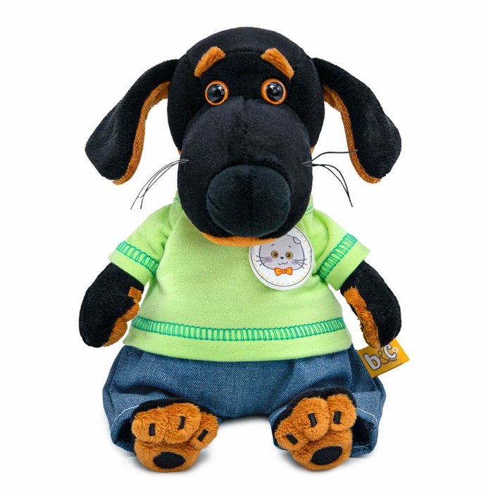 Мягкая игрушка «Собака Ваксон baby» в брючках «Деним» — это милый и стильный персонаж, который сразу привлекает внимание. У игрушки мягкая плюшевая шерстка, большие ушки и выразительная мордочка, а яркая зелёная футболка и джинсовые брючки создают современный и забавный образ. Ваксон baby приятен на ощупь, легко сидит и подходит для игр, подарков и украшения детской комнаты.