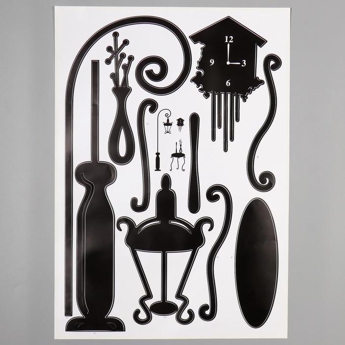 5277570 Наклейка интерьерная чёрная «Фонарь, столик и часы», 50×70 см