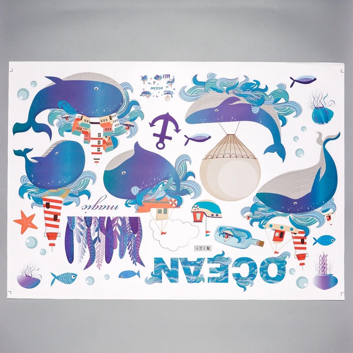 6770137 Наклейка интерьерная цветная «Киты в океане», 60×90 см