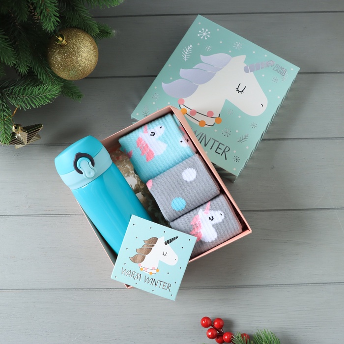 7360153 Новогодний подарочный набор термос и носки 3 пары KAFTAN «Единорог», размер 36-39