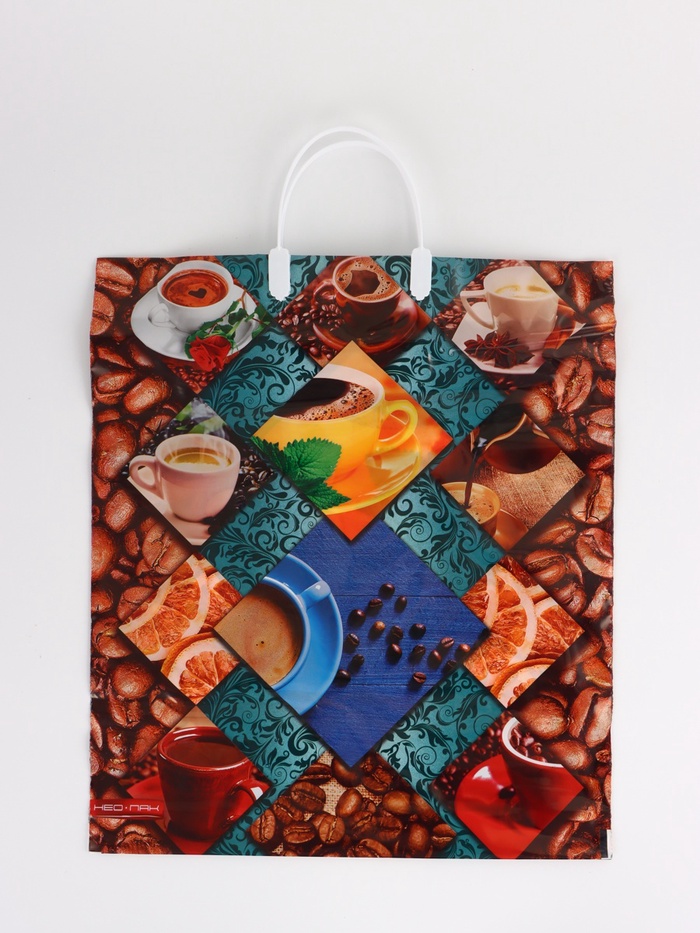 10958918 Пакет "Кофейное настроение, полиэтиленовый с вырубной ручкой, пласт. 38х44 см, 90 мкм
