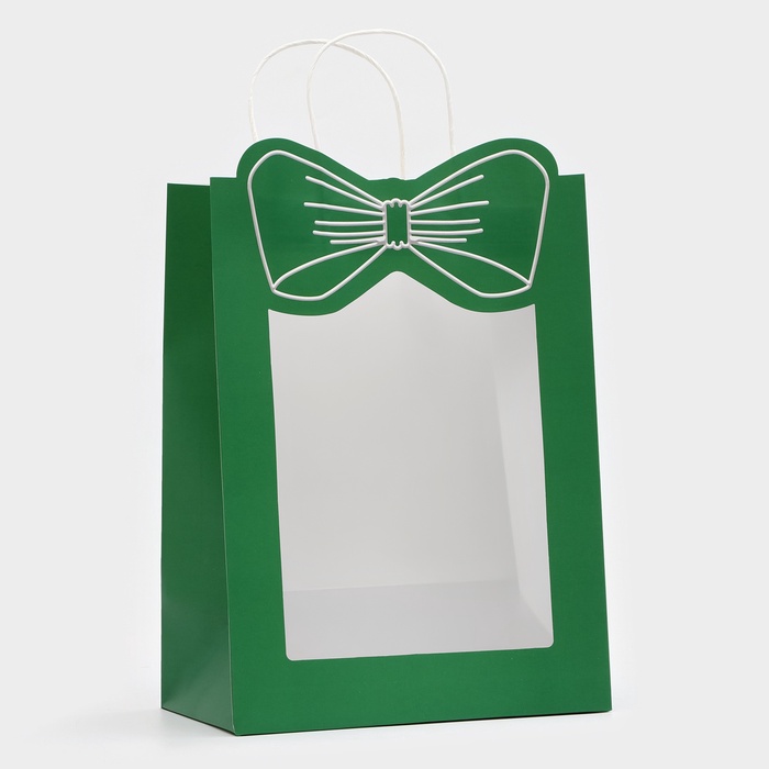 10851681 Пакет подарочный бумажный с окном «Бант», 26×35×15 см, крафт зеленый