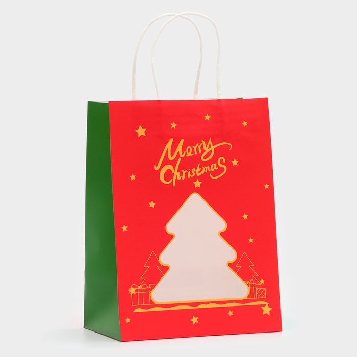10851721 Пакет подарочный бумажный с окном «Ёлка» 19×26×13 см, крафт красный
