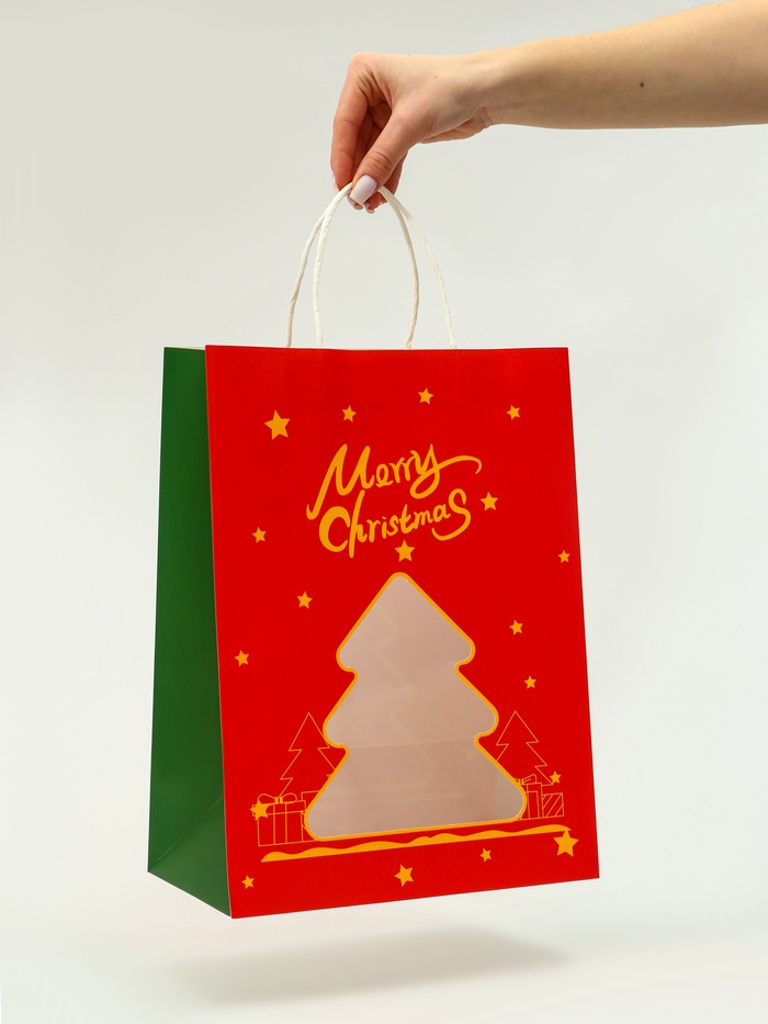 10851666 Пакет подарочный бумажный с окном «Ёлка» 26×35×16 см, крафт красный