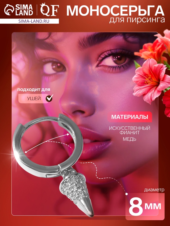 9705793 Пирсинг в ухо (хеликс) «Шип», d=8 мм, белый в серебре
