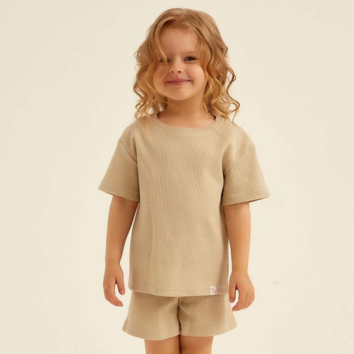 Пижама для девочки (футболка и шорты) SL HOME, размер 28 (86-92 см), бежевая (артикул 10197101) ЕОНК