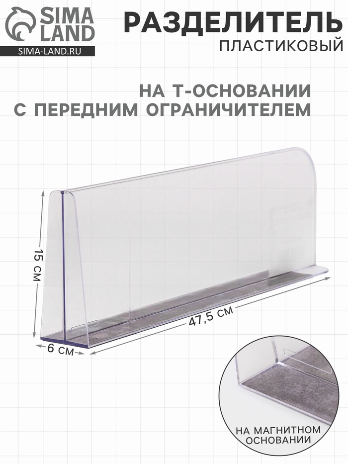 Пластиковый разделитель на Т-основании с передним ограничителем: 15 см, на магнитной основе: 47.5×6×15 см (артикул 7415806) ЕОНК