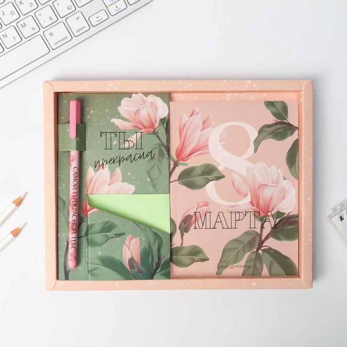 Подарочный набор «8 Марта»: ежедневник А6, блок бумаги и ручка пластик (артикул 5219569) ЕОНК