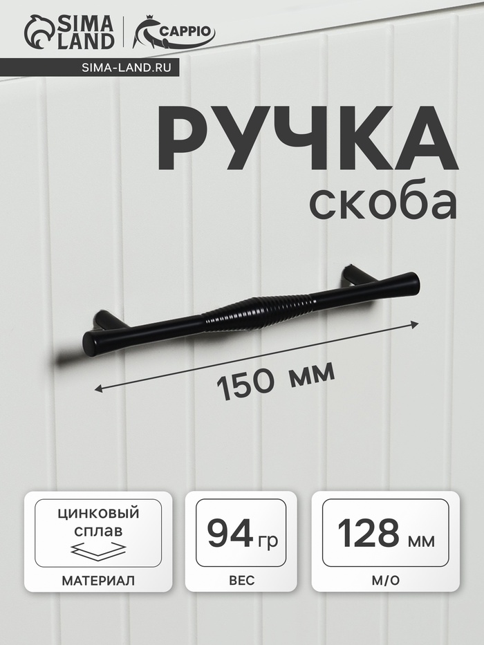 Ручка-скоба CAPPIO Лабиринт, цинк, м/о 128 мм, цвет черный (артикул 10732748) ЕОНК