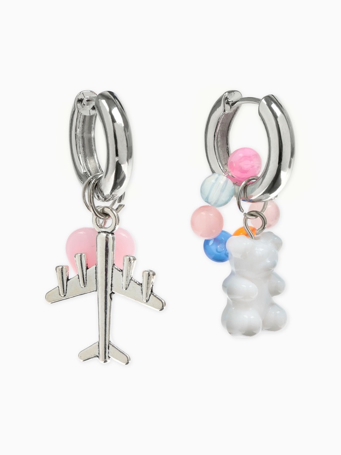 Серьги со съёмным элементом «Трансформер» мишка и сердце, цветные в серебре (артикул 9321623) ЕОНК