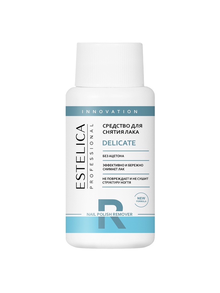 ESTELICA PROFESSIONAL DELICATE, средство для снятия лака 50 мл — деликатное профессиональное средство, которое быстро и безопасно удаляет все виды лаков с натуральных ногтей, не повреждая их поверхность и не пересушивая кожу вокруг ногтей. Отличается мягким действием и подходит для чувствительной ногтевой пластины.