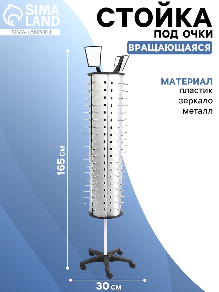 Стойка для очков вращающаяся, 95 мест, 30×30×165 см, цвет серебристый