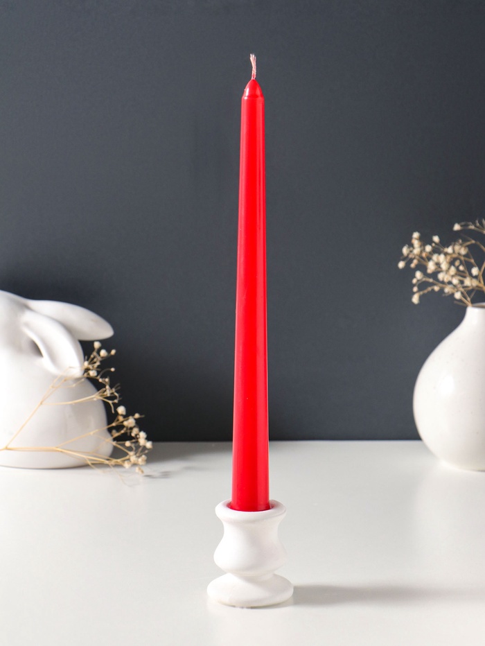 Длинная красная свеча — это акцент для каминной полки, обеденного стола или консоли в прихожей. Она не нуждается в подсвечнике и самодостаточно выглядит в одиночку или в паре. Её огонь не конфликтует с запахами из кухни или парфюмом, делая эту модель универсальным выбором для любого момента, когда нужно мягкое, естественное освещение.